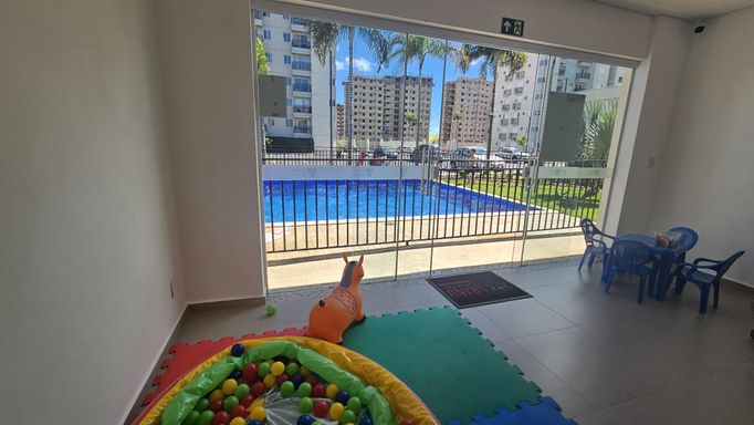 🏠 O Apartamento * Área Privativa: 96 m². * Dormitórios: 3 quartos, sendo 1 suíte com closet montado. * Banheiros: Banheiro social e banheiro da suíte (ambos com armários). * Área Gourmet: Espaço com churrasqueira e armário planejado. * Cozinha e Serviço: Cozinha e lavanderia equipadas com armários. * Vagas: Garagem para 2 carros. ✨ Diferenciais e Segurança * Acesso: Porta com fechadura eletrônica. * Proteção: Telas instaladas em todas as janelas. * Condomínio: Valor de R$ 380,00 (já com água e gás inclusos). 🏢 Infraestrutura do Prédio * Segurança Tecnológica: Portaria de vídeo com reconhecimento facial e liberação por TAG. * Lazer: Brinquedoteca e salão de festas com churrasqueira.